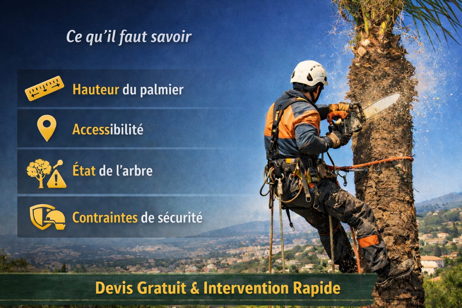 Les informations présentées permettent de mieux comprendre les facteurs influençant le coût d’une intervention, notamment dans les situations d’abattage de palmier en environnement contraint ou à risque.